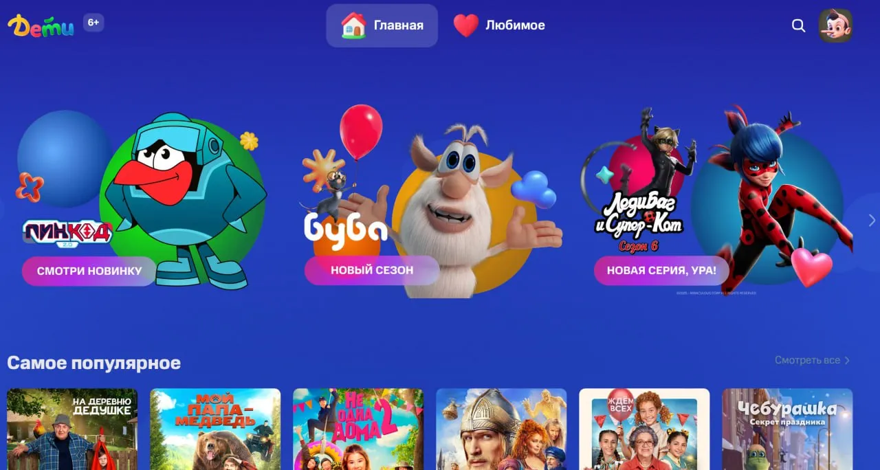 Родители смогут настроить для ребенка отдельное пространство с мультфильмами, видео, аудиосказками и детскими телеканалами. Будут доступны полки: под тематику, аудиторию и популярные франшизы, а также специальные образовательные подборки.